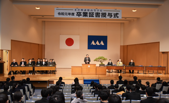 令和2年2月28日(金)午前9時より米沢興譲館高等学校講堂にて鈴木基同窓会副会長の司会のもと米沢興譲館同窓会入会式が行われた。