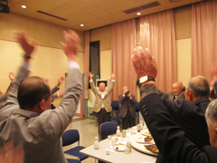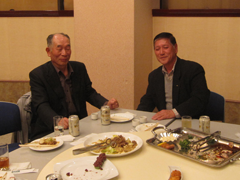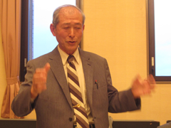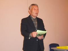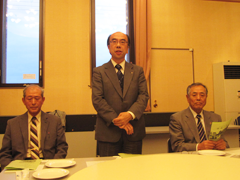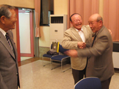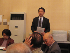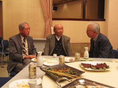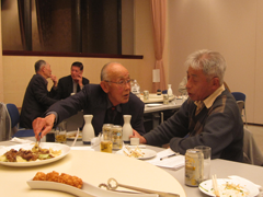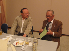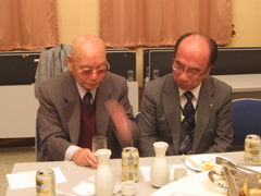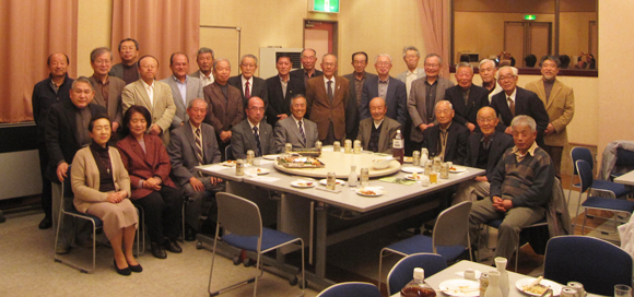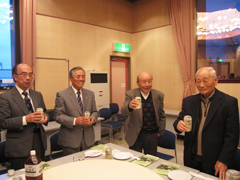 大友恒則同窓会会長の挨拶に続き、乾杯の御発声は昭和20年卒の今井昭二大先輩が行った。「色々な会で乾杯の音頭をとっているが、こんなに寂しい会はなかった。今後若い会員が参加しやすい方法、例えば会費を安くするとか対策を考えてほしい。」と挨拶し乾杯した。懇親会は和気藹々と行われた。