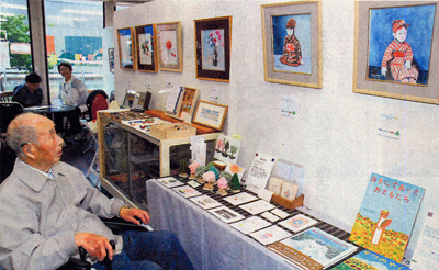 高森さんは「楽しく描かせてもらった。飾ってもらってありがたい」と感謝。描くのに1週間ほどかけた人形の絵に対して「人形は特に表情が大事。それを出すのに苦労した」と振り返り、今後の創作活動について「できるだけ頑張ってみたい」と話していた。12日まで。