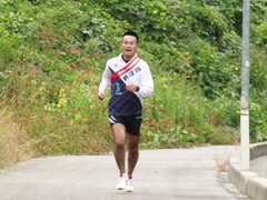 船坂峠を力走するバレー部小形一友君S63卒