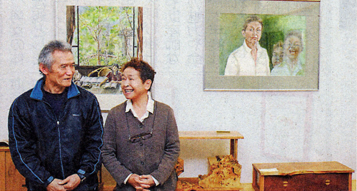 ○南陽市の元教諭安藤さん夫妻 水彩と木工・結婚40年展(2011年5月14日山形新聞)