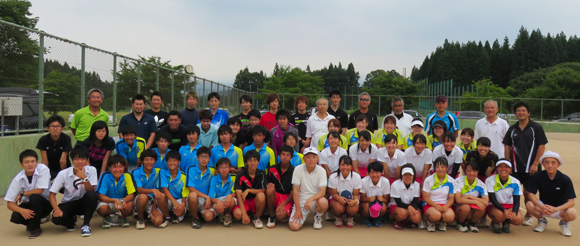 平成28年8月15日(月)、興庭会(米沢興譲館ソフトテニス部OB会)と現役部員の交流試合が、笹野の興譲館高校グラウンドで開催されました。夜には興庭会総会・懇親会が行われました。