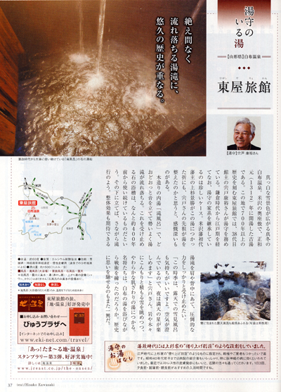 真っ白な雪景色が広がる真冬の白布温泉。米沢の奥座敷で、正和元(1312)年に開湯した古湯である。この地で700年以上の歴史を刻む東屋旅館では、38代目館主の宍戸康裕さん(S36卒)が湯守を務めている。鎌倉時代から江戸期を経てなお、湯守の家系を継承しているのは珍しいケース。米沢藩初代藩主の上杉景勝がこの湯につかった折にも、宍戸さんの先祖が湯を整えたのかと思うと、感慨深いものがある。