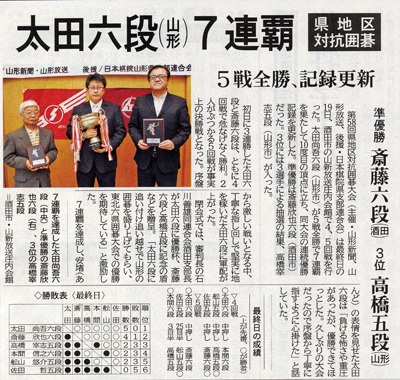 県地区対抗囲碁・太田六段が優勝(2011年10月24日山形新聞)