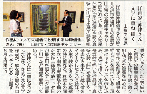 ※芭蕉の足跡鮮やかに・洋画家・沖津さんが個展(2013年5月18日山形新聞)