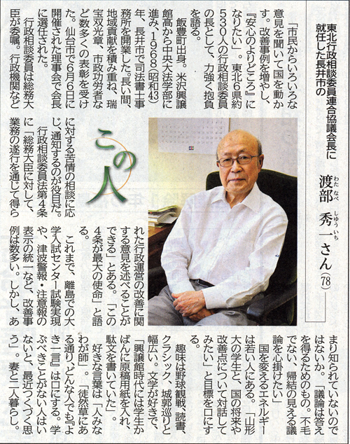 東北行政相談委員連合協議会長に就任・渡部秀一さん(78・S32卒)
