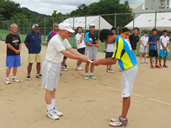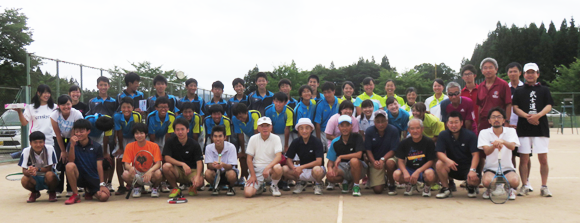 平成29年8月15日(火)、興庭会(米沢興譲館ソフトテニス部OB会)と現役部員の交流試合が、笹野の興譲館高校グラウンドで開催されました。試合前に、中條会長の挨拶、現役部員への活動助成金の贈呈、OB自己紹介がありました。一年ぶりにラケットを持つ者もおり、怪我が心配でしたが無事終了しました。夜は総会・懇親会が行われました。