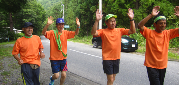 昨年個人参加で完走した昭和50年卒の田中雄二君は仕事の都合で一斉スタートに間に合わず一人寂しいスタートになった。ゴール時は、皆な解散後で又一人で走って下山したとのことであった。驚くべきパワーである。事務局、各学年等の伴走車が少なくなったが、連絡調整の必要性を感じた。