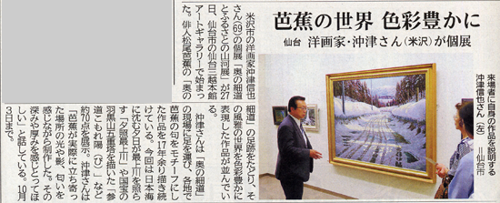 ※芭蕉の足跡鮮やかに・洋画家・沖津さんが個展(2013年5月18日山形新聞)