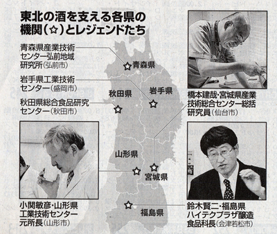 全国有数の杜氏集団「南部杜氏」を抱える岩手県の工業技術センターは、3人の職員が各蔵をくまなく回る。醸造技術部長の米倉裕一さん(52)は「職人の技を生かすのが私たちの仕事」。次の時代をみすえ、海外向けの酒の酵母開発に力を入れるのが秋田県総合食品研究センターだ。青森県産業技術センターは寒さに強い酒米を開発し、実用化に乗り出す。