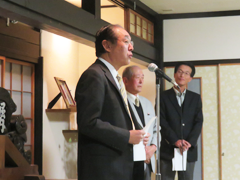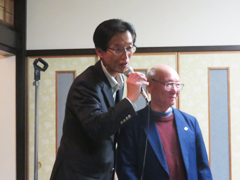 講演会後の懇親会は同じく29名の参加で、早川支部長(昭33年卒)の挨拶に続き、本年新しく同窓会会長に就任された小嶋彌左衛門氏(昭42年卒)にご挨拶を頂き、横戸隆興譲館高校校長の乾杯のご発声で始まりました。講師の鈴木基氏や今年から同窓会副会長に就任された藤倉万里子氏(昭53年卒)の参加も得ながら、また小学校校長を退職されてからプロ歌手デビューされた佐藤清二氏(昭46年卒)(芸名 本郷 一)の歌などもあり大変盛り上がった会になりました。そして長年同窓会の常務理事としてお世話になった遠藤岩根氏(昭34年卒)の挨拶、早川支部長の万歳三唱で名残惜しい会はお開きとなりました。