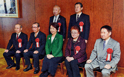 表彰されたのは商工団体功労が▽佐野雅英氏(62)=協同組合米沢総合卸売センター理事長、米沢市▽鈴木富蔵氏(81)=全村山市商工会長、村山市▽中瀬義秋氏(71)=前酒田ふれあい商工会長、酒田市▽前山亮一氏(72・S39卒)=県自転車商協同組合理事長、米沢市。観光事業功労が▽秋葉隆子さん(79)=米沢観光コンベンション協会副会長、米沢市▽鈴木富士雄氏(66)=戸沢村観光物産協会長、庄内町。