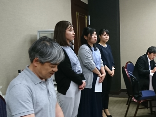 期待のH20卒女性陣(手前は小池忠禎副実行委員長)(2018.05.17)
