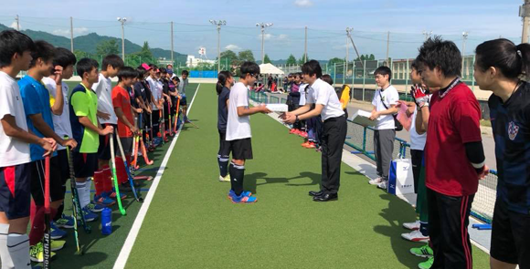 定例総会後、現役支援として、現役生に練習球を贈呈いたしました。 高校生活、限られた時間ではありますが、ホッケーを思う存分楽しんでくださいね!