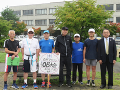 主宰である土澤幸雄先生、小嶋彌左衛門同窓会長の挨拶の後、学年ごと、そして全体の集合写真を撮影した。 今年の参加チームは昭和41年卒、49年卒、昭和51年卒、新たに平成3年卒の学年4チームとバレー部OBチーム、個人は昭和59年卒佐藤知由君、平成3年卒の佐々木謙介君と渡部裕輝君の3名であった。