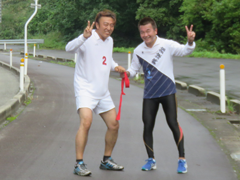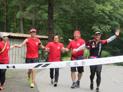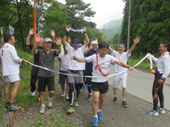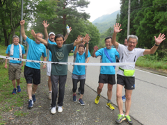 一番にゴールをきったのはバレー部。続いて佐々木君、昭和51年卒剛腕会、昭和49年卒思求会、佐藤君、そして渡部君と一緒に平成3年卒がゴールした。剛腕会、思求会は遠路東京からの出場もあり見事なチームワークであった。昭和41年チームは今年も少数精鋭で笹野の興譲館をゴールの地とした。タイムは1時間21分から1時間40分。還暦を過ぎた2チームは例年よりタイムが遅くなってしまった。
