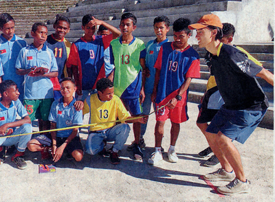 ■吉田福太郎(よしだ・ふくたろう) 米沢興譲館高を卒業後、白鴎大学教育学部発達科学科でスポーツ健康を専攻。国際協力機構(JICA)の青年海外協力隊として、今年1月から東ティモールに派遣された。職種は体育。米沢市出身、23歳。