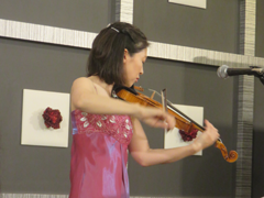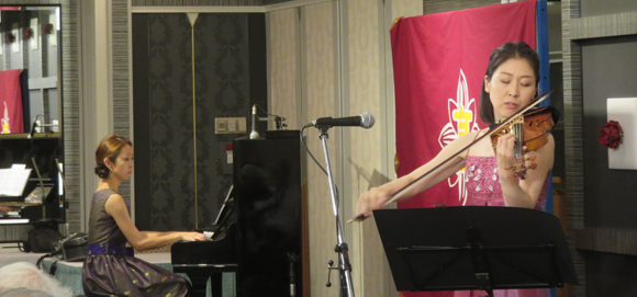 午後3時55分からバイオリニスト早川文乃さん (平成5年卒)を迎えクライスラーとサラサーテの二人の作曲家の作品をメインにミニコンサートが行われた。ピアノ伴奏は伊藤愛美さんで、曲目はクライスラーの「ジプシーの女」、愛の三部作である「愛の悲しみ」、「美しきロスマリン」、「愛の喜び」、サラサーテの「カルメン幻想曲より」、「ツィゴイネルワイゼン」等であった。アンコールにはマスネの「タイスの瞑想曲」で応えていただいた。
