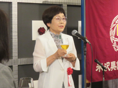 最後に応援歌、自治会歌を斉唱し、最年少卒業生鈴木豊臣君(H13年卒)の万歳三唱、近藤郁子副支部長(S37年卒)の閉会の挨拶で盛会に終了した。