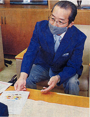 贈呈式で中川勝市長にパンフレットを手渡した鈴木会長は「感染予防の観点からも歯磨きは大事。この時期だからこそ、歯磨きを習慣付けてほしい」と話した。