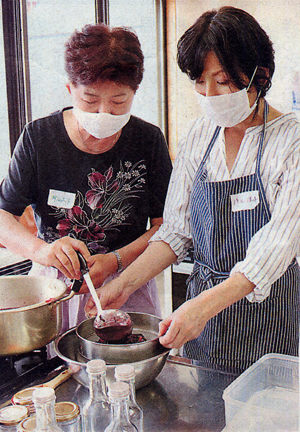 気分転換の場を提供しようと、同センターが主催した。子育て中の母親など約15人が参加。市内で受注生産のパン店を経営する国際中医薬膳師の井口美穂さん(H8卒)が講師を務めた。井口さんはコーディアルの調理法を指導するとともに、ハイビスカスやローズヒップなど各種ハーブの効能を紹介した。