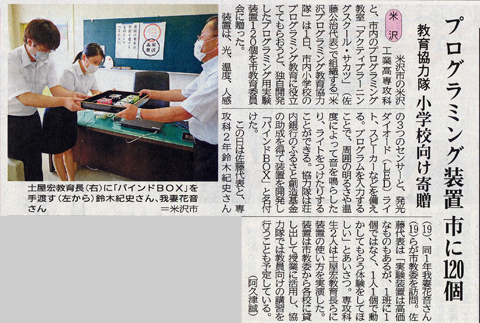 ※プログラミング装置開発・米工高専攻科民間教室が連携(2020年8月8日山形新聞)
