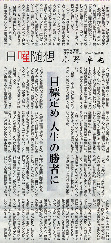※ボードゲームの魅力、小野会長に聞く・「誰でも勝てる」面白さ(2016年9月22日山形新聞)