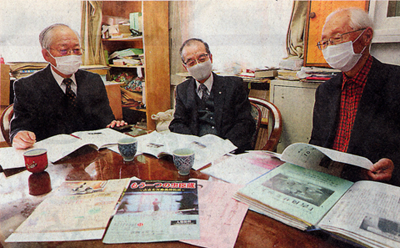米沢・上杉吉良温故交流会の10年間の活動を振り返る種村信次会長(中央・S33卒)ら
