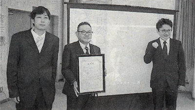 奨励賞を受賞した伊藤浩志教授(S59卒)ら=米沢市の山形大学工学部