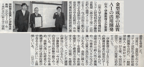 金型成形の品質、AIの活用開発・山大・伊藤浩志教授らが受賞