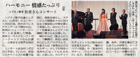 ※心弾む歌声、聴衆を魅了・山形、松倉とし子さん公演(2020年1月18日山形新聞)