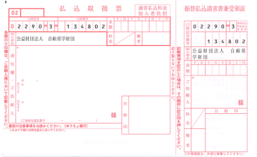 ■お振込先 口座番号:02290-3-134802 公益財団法人 自頼奨学財団