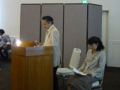 司会を勤めた菅野紀生君と高橋優子さん(共にS54卒)