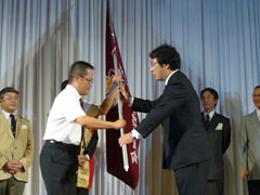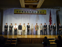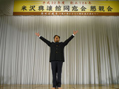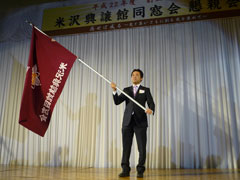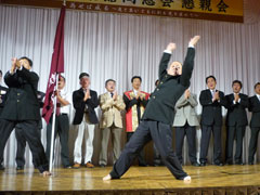万歳三唱 次期実行委員長 栗林雄二君(S51卒)